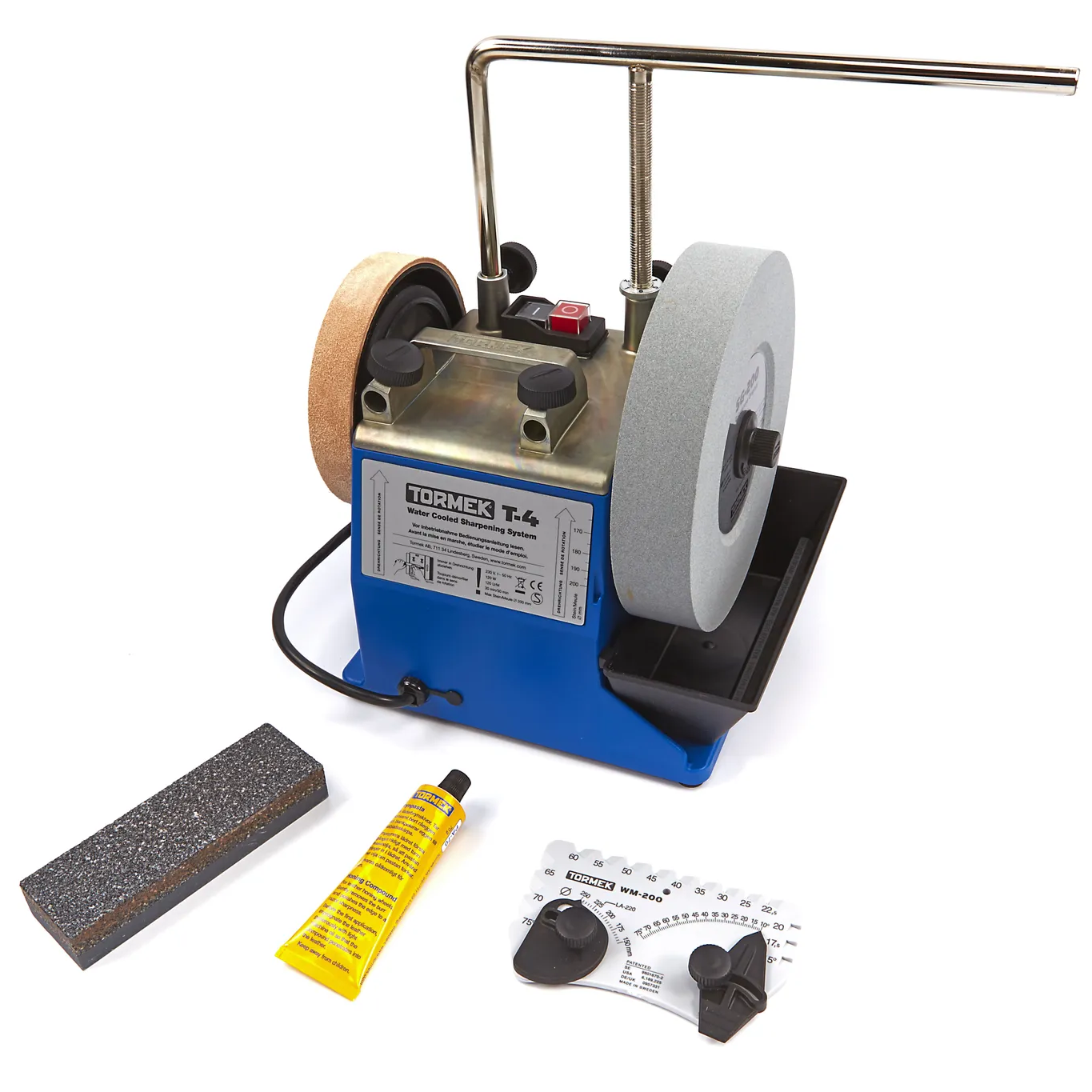 Tormek T-4 Original è una macchina compatta di qualità perfetta per l’uso in casa e per hobby, oppure per i professionisti che hanno poco spazio. Coltelli, forbici, lame per tosaerba e scalpelli. Praticamente tutti gli utensili da taglio possono tornare affilati più che da nuovi con il sistema completo di dispositivi Tormek. Il supporto universale offre la massima ripetibilità, mentre il disco in cuoio garantisce un’affilatura al pari di un rasoio.